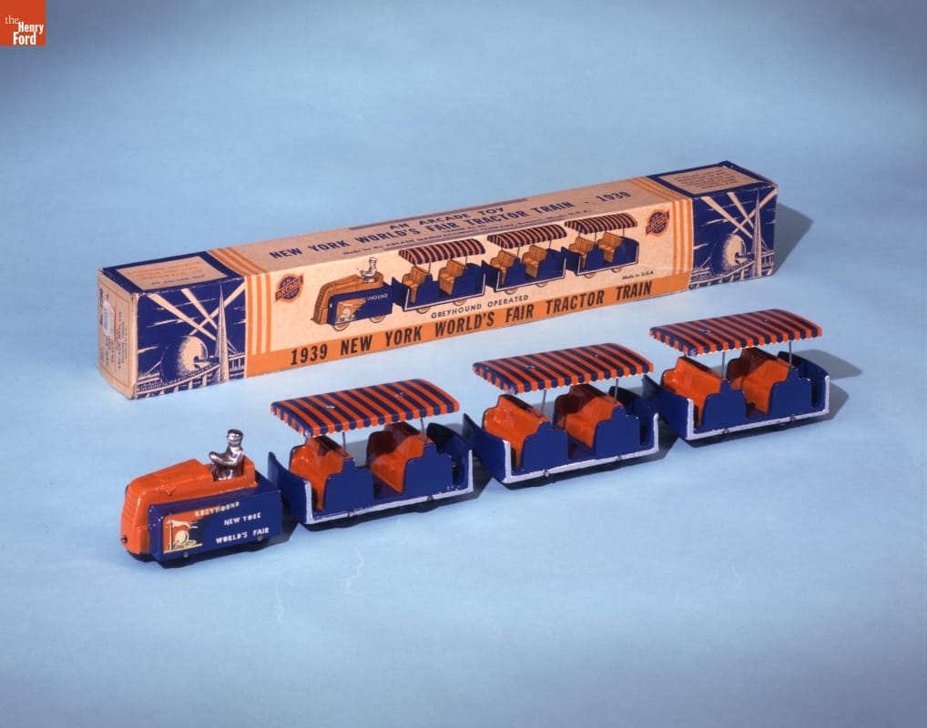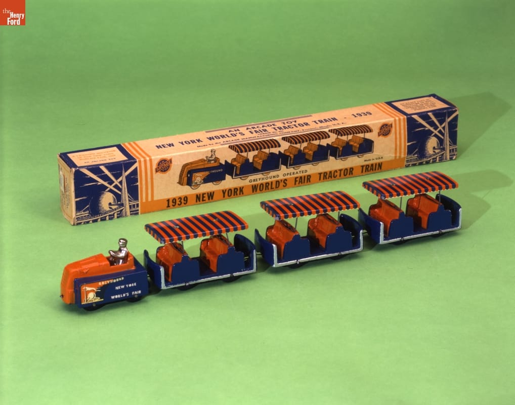 The 1939-40 New York World's Fair - themed "Building the World of Tomorrow" - encouraged a depression-weary public that the future would be rosy. The fair in New York City's Flushing Meadows-Corona Park attracted 45 million visitors. Many fairgoers returned home with souvenirs, such as this replica of the tractor trains in operation at the exposition.