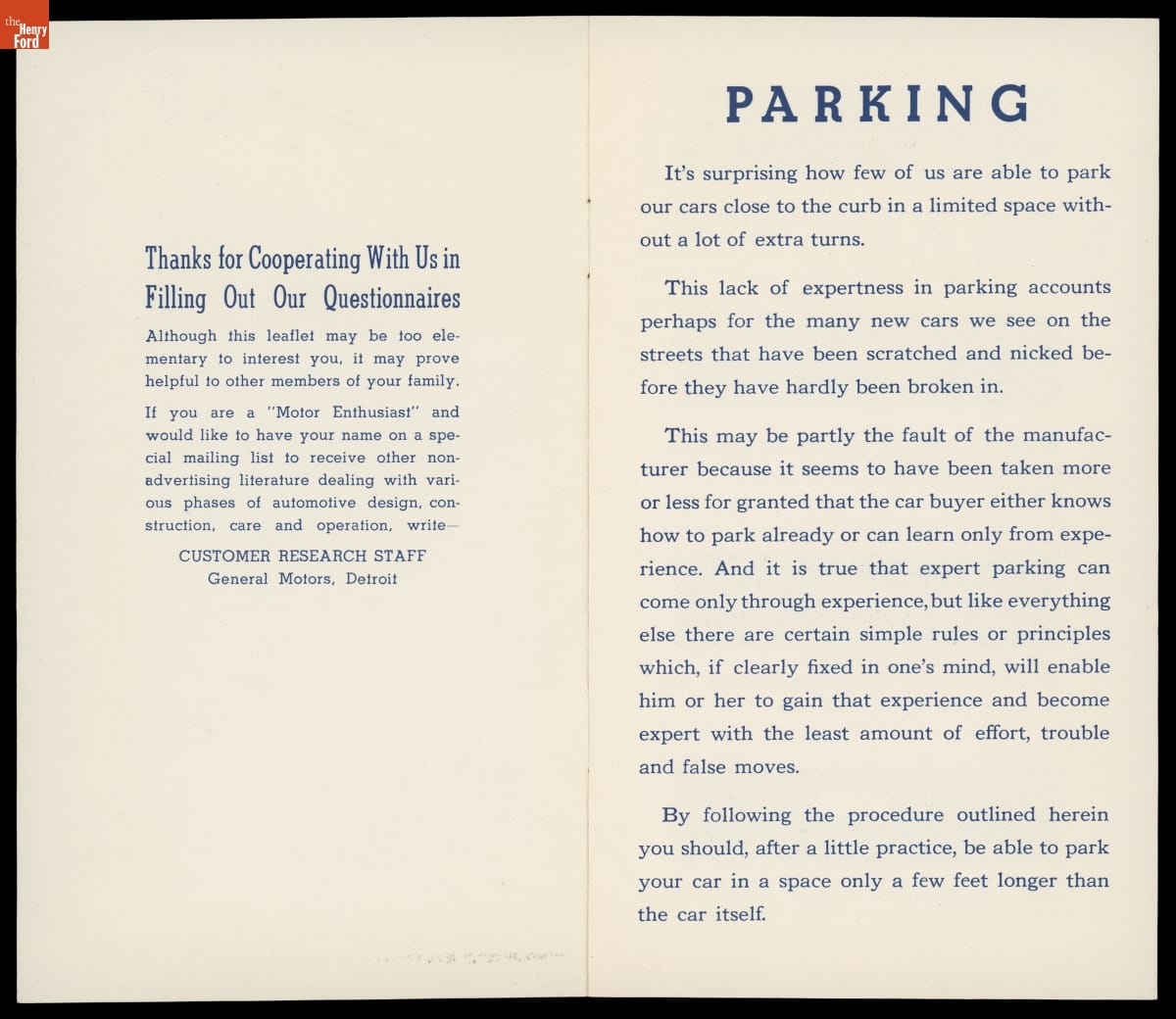 General Motors Publication, "How to Park in a Tight Place," circa 1940