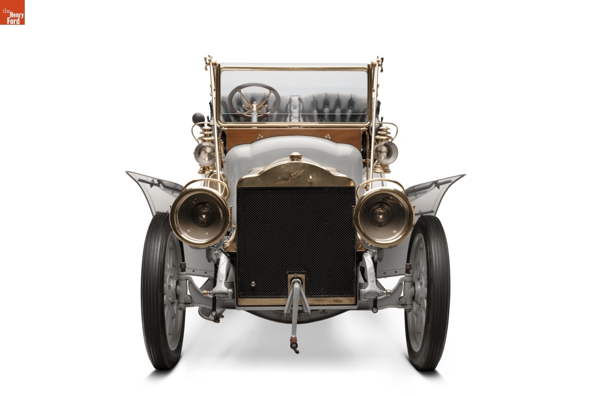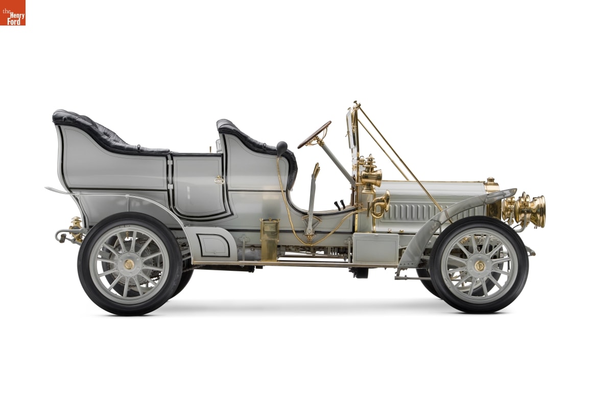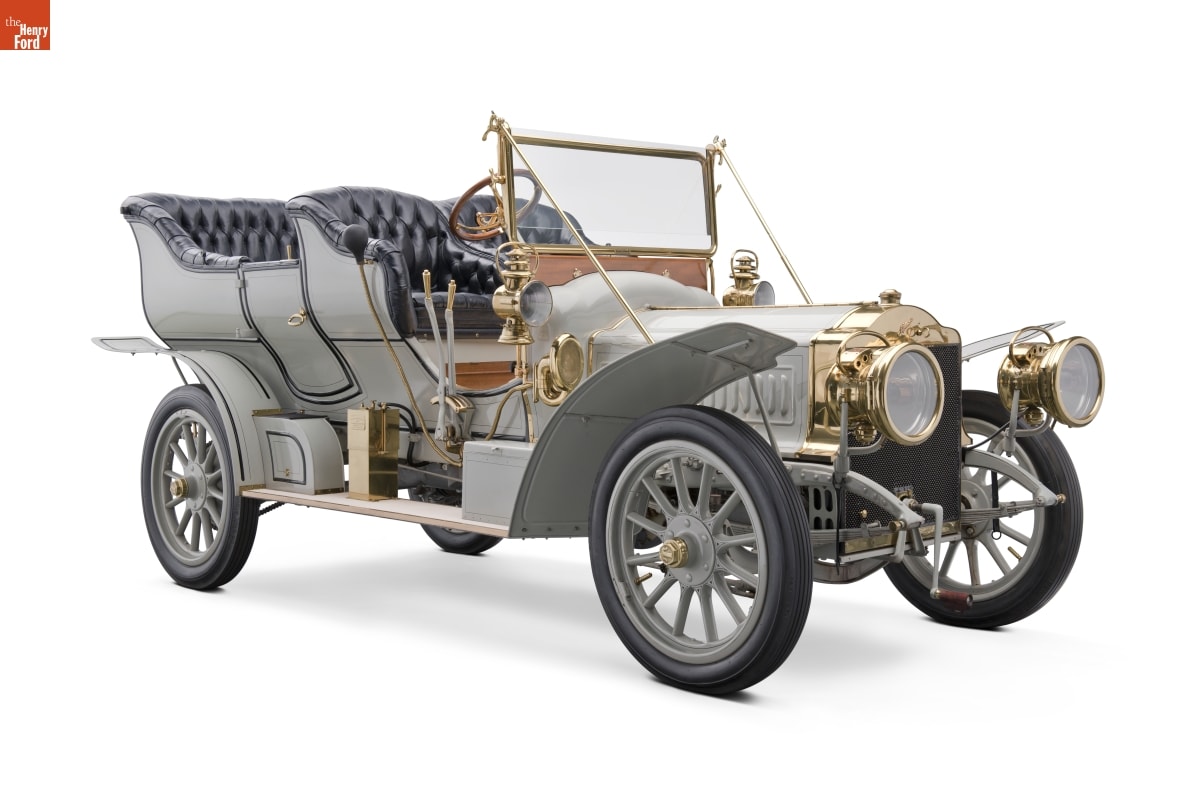 The E.R. Thomas Company of Buffalo, New York, manufactured this touring car during its peak production year of 1906. Known for their high performance, proved in 1908 when a Thomas Flyer won the New York to Paris race, the cars were also expensive. This vehicle sold for $3,700. The company faltered a few years after Henry Ford perfected his Model T.