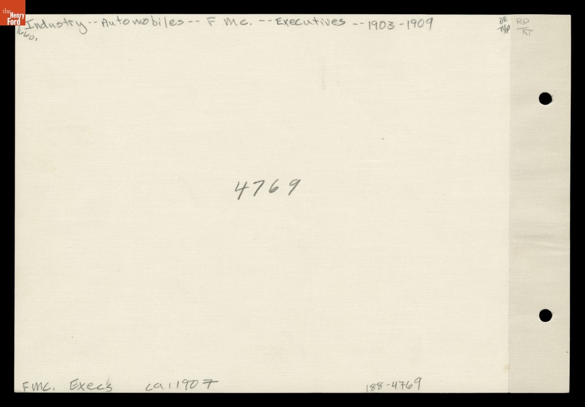 Henry Ford (front row, fourth from left) posed with Ford Motor Company executives and managers in 1907. It was a challenging year for the automotive industry. That fall, the Panic of 1907 slowed sales, and several smaller, poorly financed automakers went out of business. Ford Motor Company had sufficient sales and cash reserves to weather the storm.