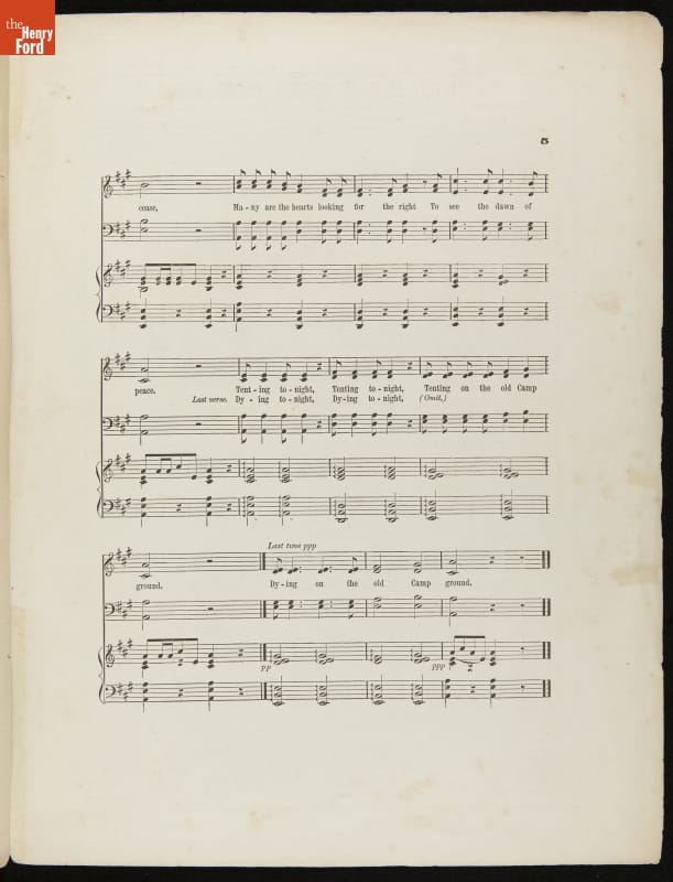 Music Sheet, "Tenting on the Old Camp Ground," 1864