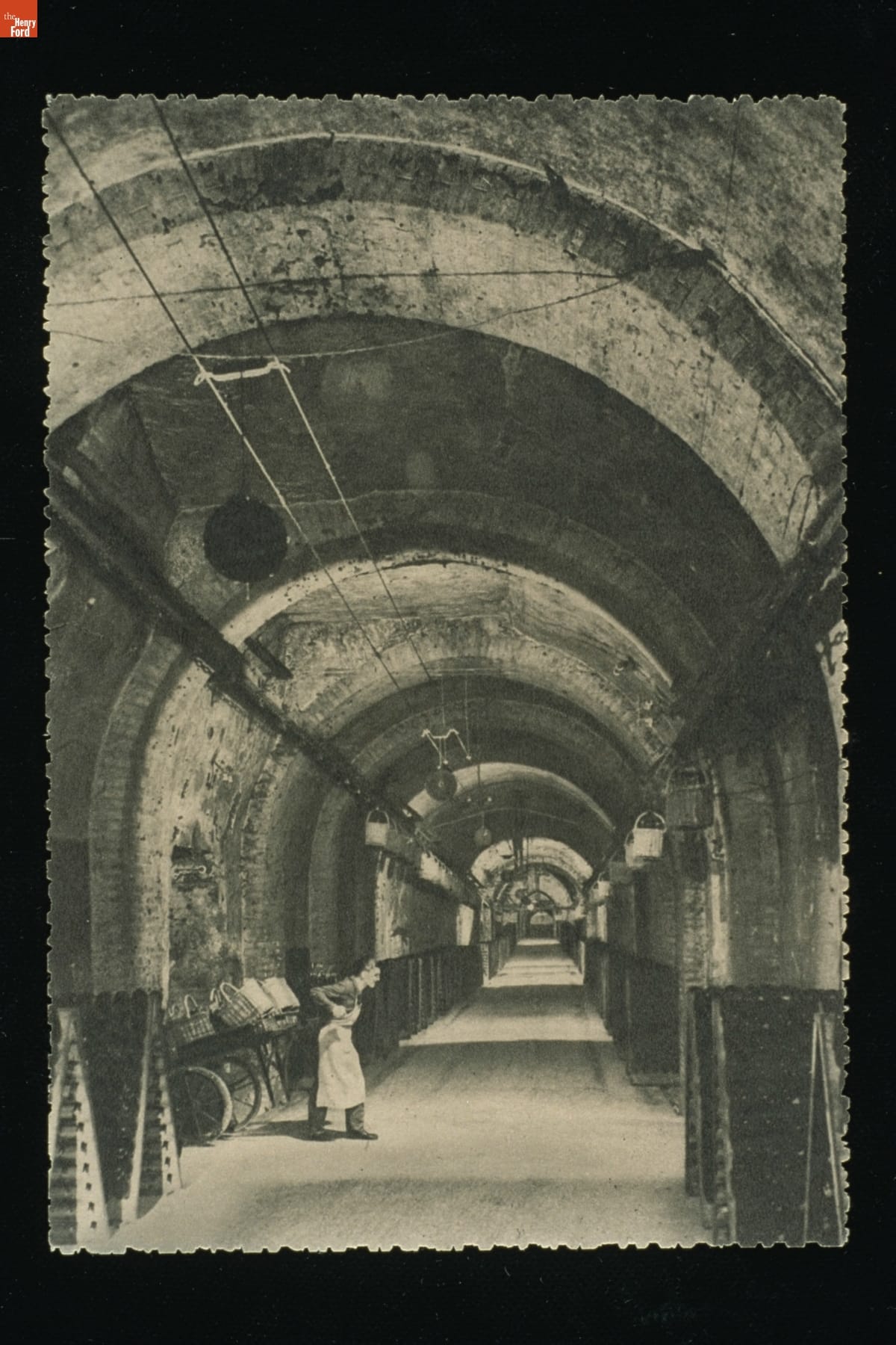 Worker in a Gallery with Wine Bottles at Champagne Pommery & Greno near Rheims, France, circa 1925
