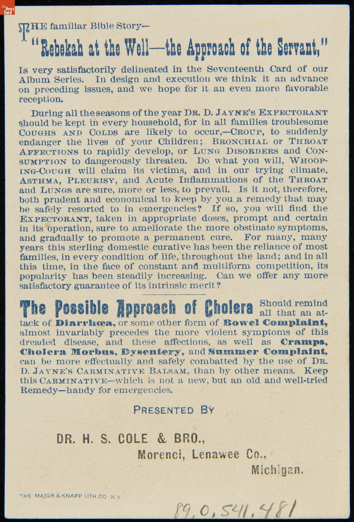 Trade Card for Dr. Jayne's Patent Medicines, "Rebekah At the Well -- The Approach of the Servant," 1880-1900