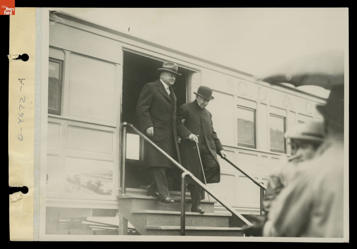 President Herbert Hoover and Thomas Edison Exit "The President" Train at Smiths Creek Station, October 21, 1929