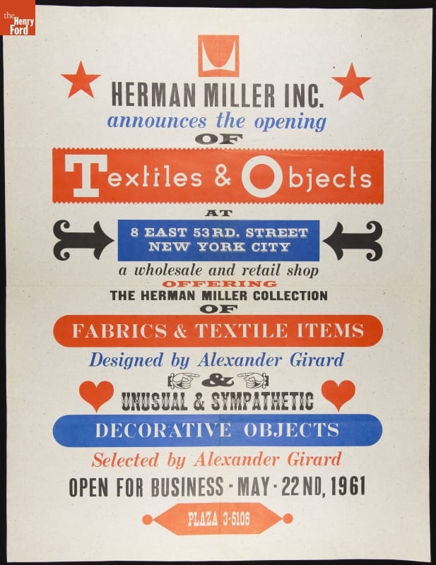 Announcement of the Herman Miller Collection of Fabrics & Textile Items by Alexander Girard for Sale at a Shop, May 1961