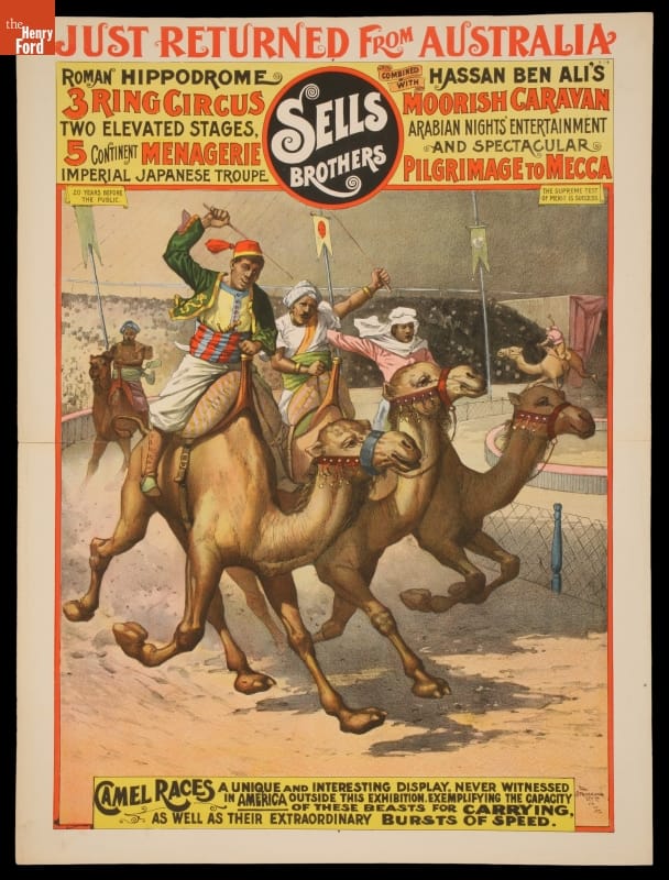 Circus Poster, Sells Brothers, "Camel Races," circa 1892