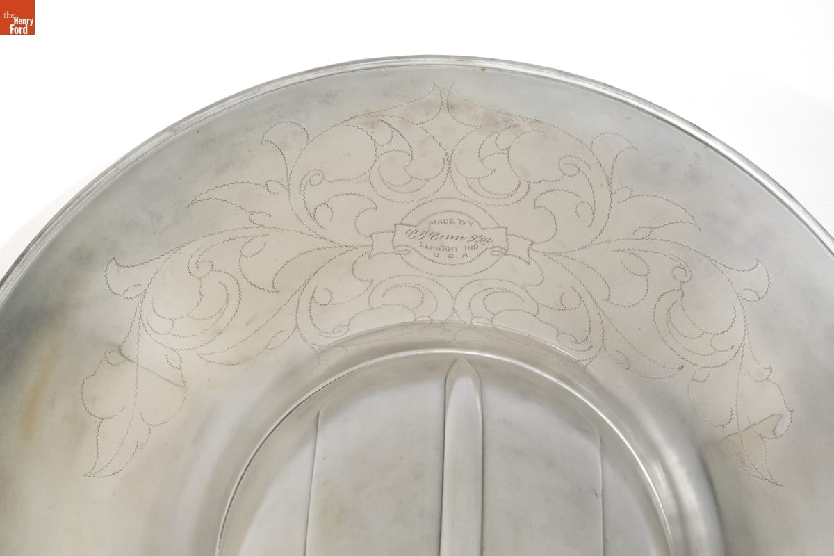 Henry Ford put together an "Old Time Orchestra" to play at his old-fashioned dances. In the early years, the orchestra included a fiddle, dulcimer, cimbalom-and this sousaphone. Maurice Castel played it, later switching to a string bass. About 1938, Castel, skilled in watch and clock repair, left the orchestra to work with Ford's collection of antique timepieces.