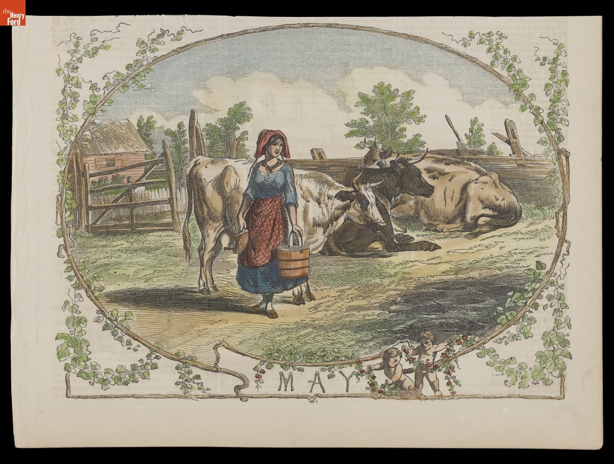 Farmers in the mid-19th century depended on cows to provide milk to make butter and cheese for their families and for sale. But cows needed constant attention. Cows had to be milked daily and led out to pasture to feed. Men and women took care of this valuable livestock.