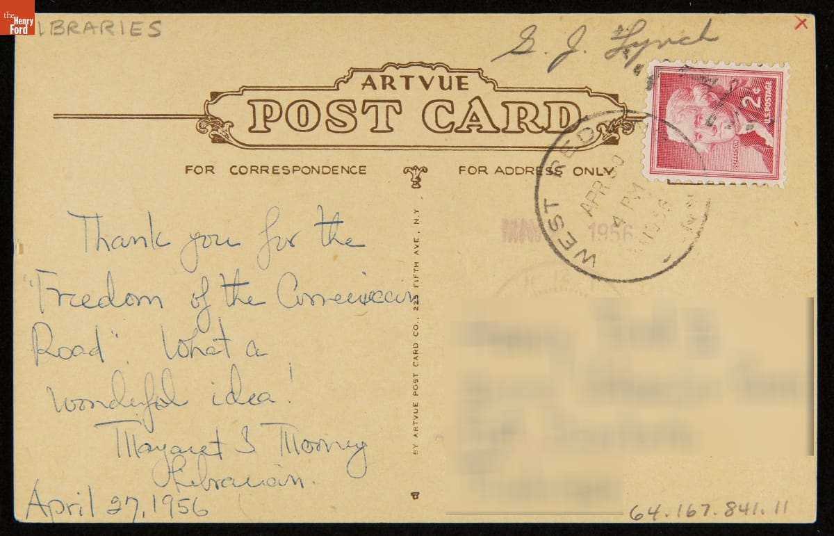 Postcard, "Mark Twain Library, Redding, Conn.," circa 1956