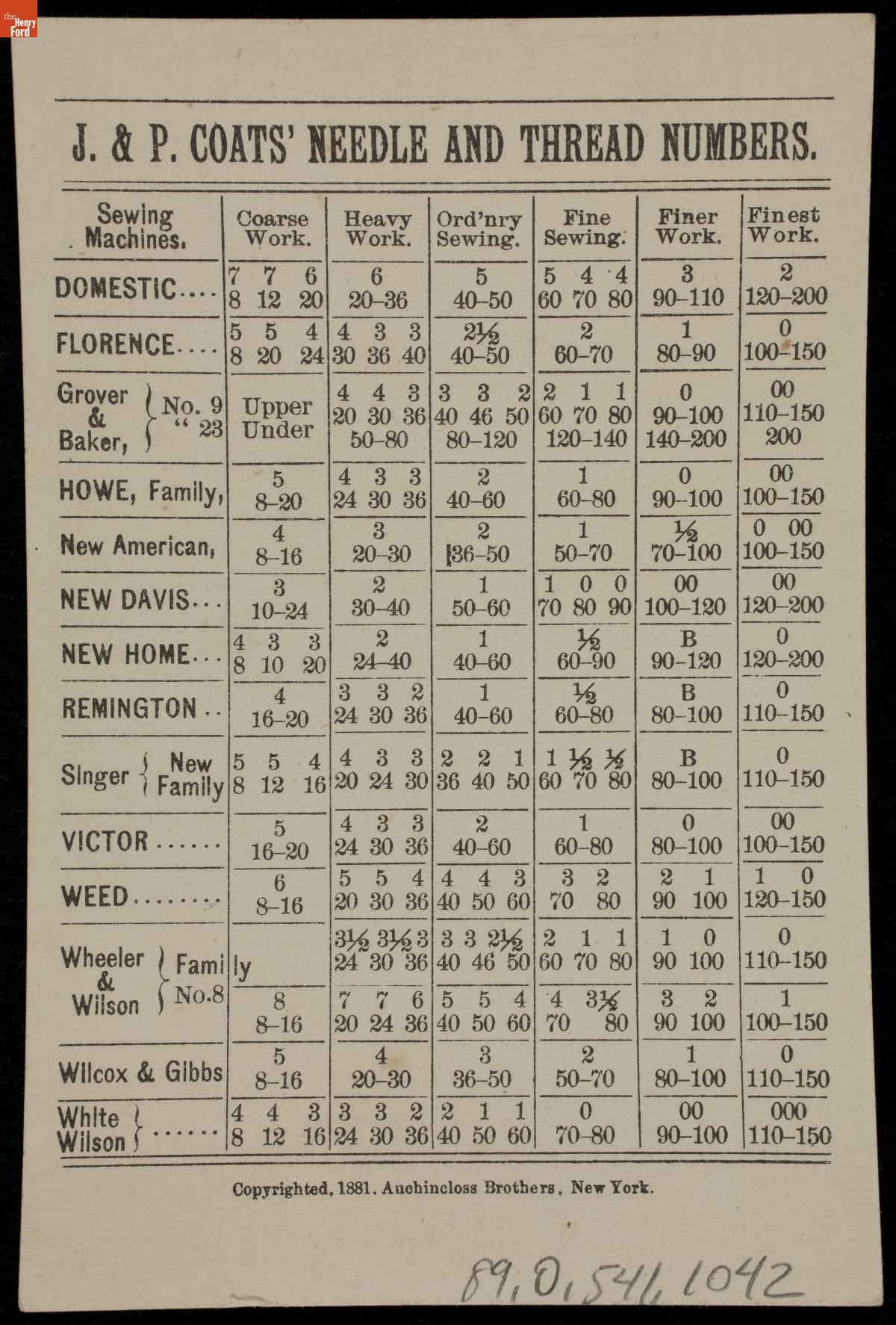 Trade Card for Six Cord Thread, J. & P. Coats, 1881