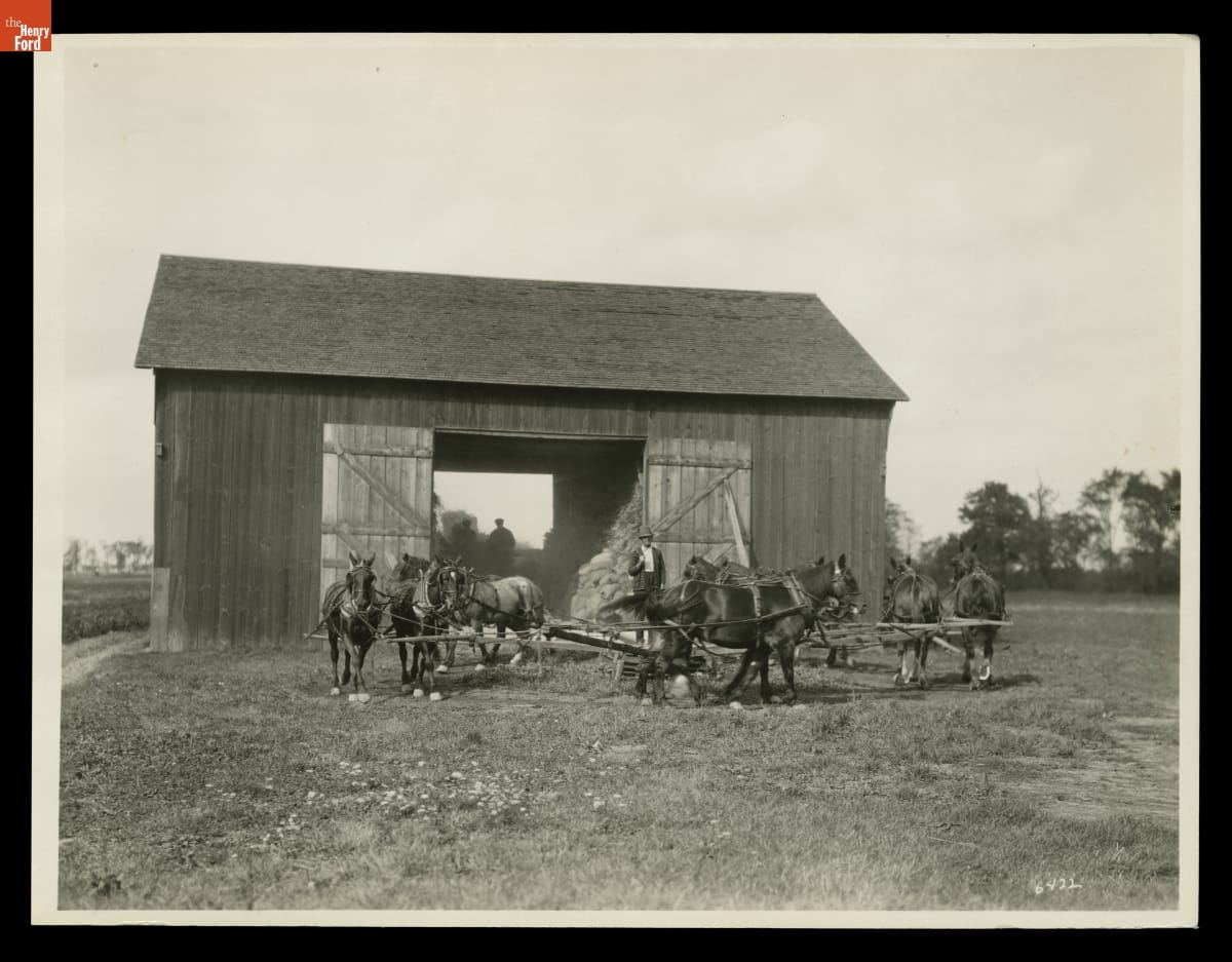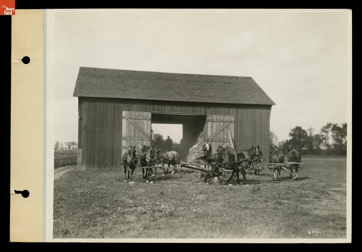 Horse-Powered Machine Used to Run Separator at the Ford Homestead Barn, 1924