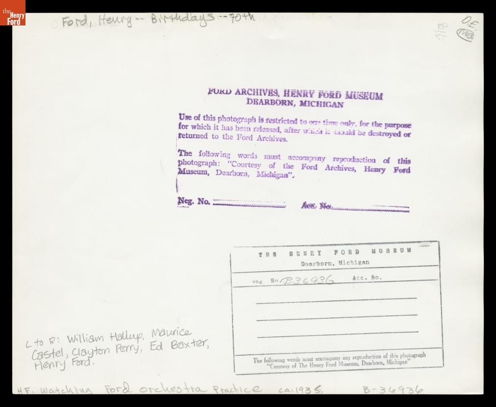 Henry Ford with His Old-time Dance Orchestra, 1933