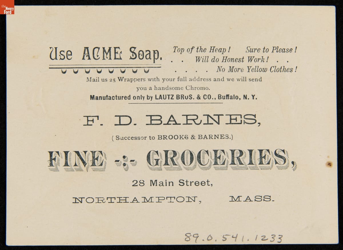 Trade Card for Lautz Bros. & Company's Acme Soap, circa 1885