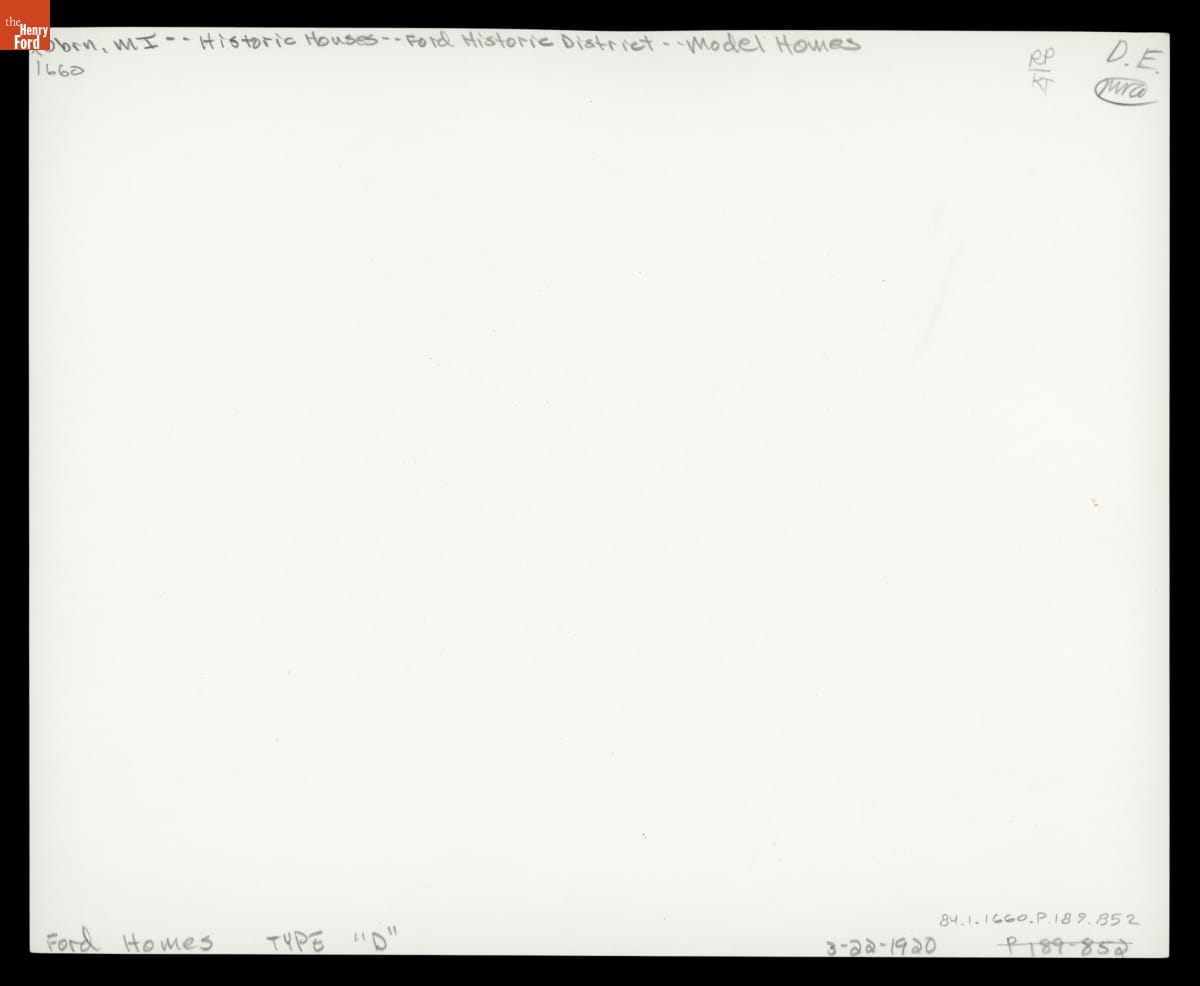 "Type D" Model Home in the Ford Homes District, Dearborn, Michigan, March 1920