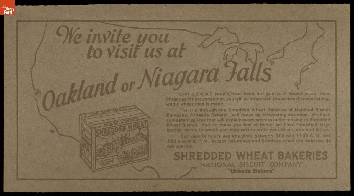 Trade Card for Shredded Wheat Bakeries Tours, National Biscuit Co., circa 1930