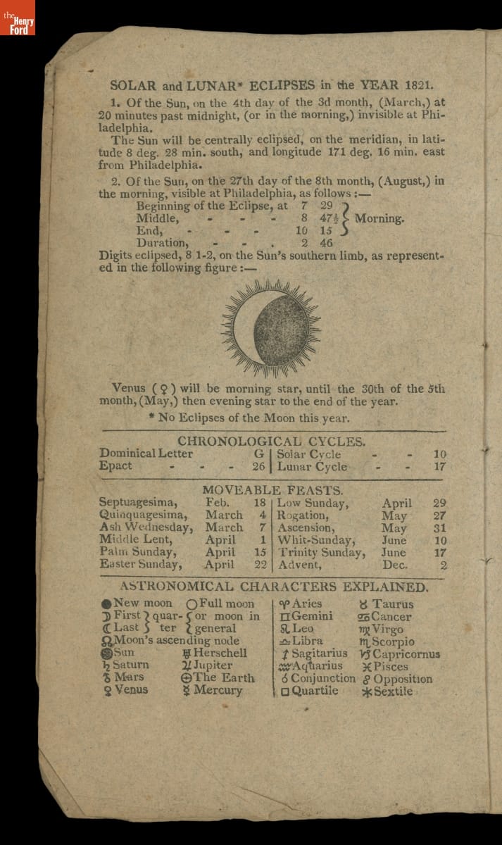 "Bailey's Rittenhouse Almanac, for the Year of our Lord 1821"