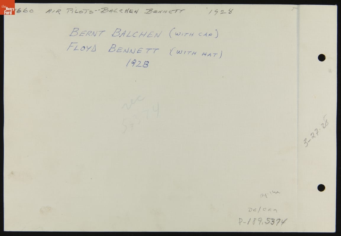 Pilots Bernt Balchen and Floyd Bennett with an Airplane to be Used in the Byrd Antarctic Expedition, March 1928