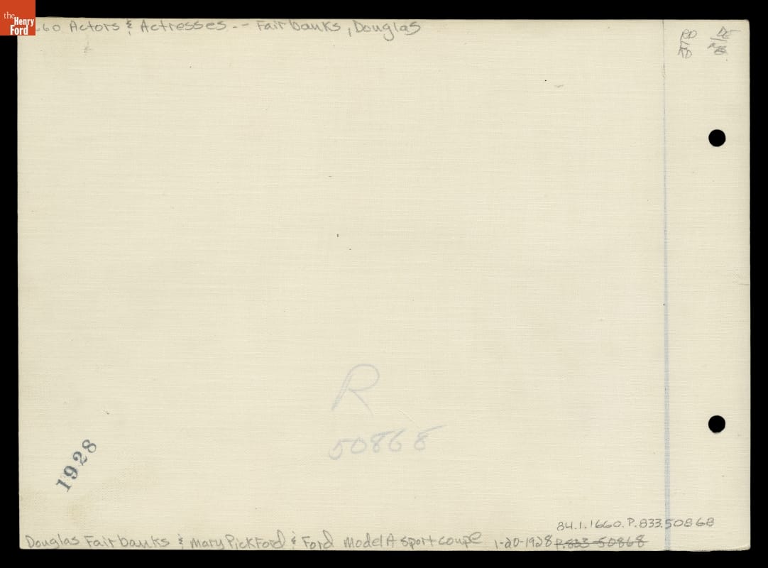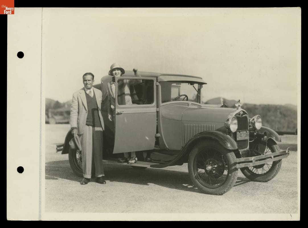 Douglas Fairbanks and Mary Pickford with a Ford Model A, January 1928