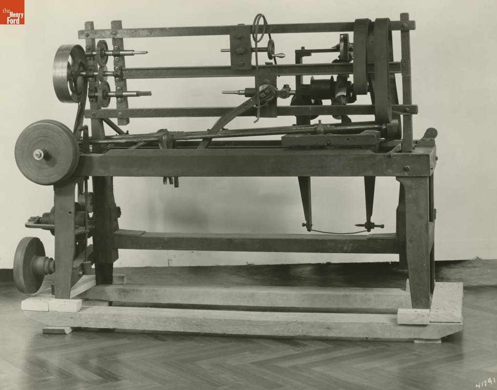 Thomas Blanchard's duplicating lathe was originally developed in 1818 for manufacturing rifle stocks. It made copies using a rotating blade whose position was guided by the shape of a prototype -- much in the manner of a modern key cutting machine. These lathes -- readily operated by semi-skilled operators -- were adapted to make other irregularly-shaped forms such as shoe lasts and axe handles.