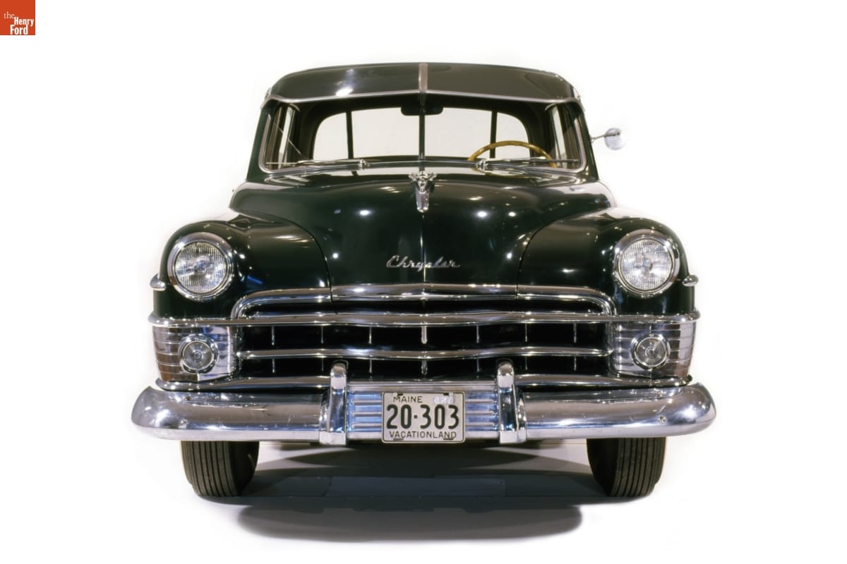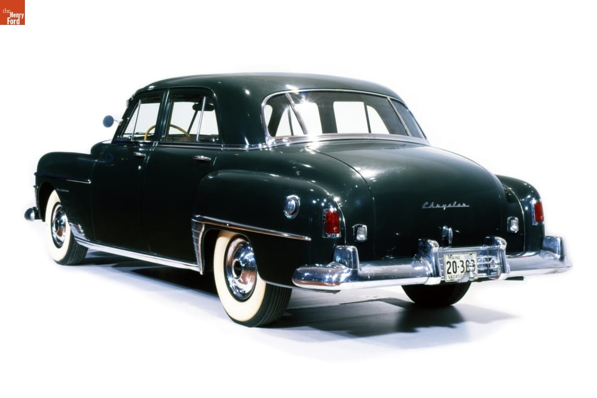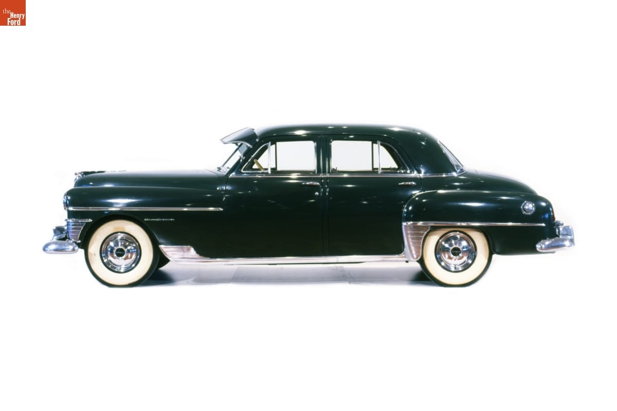 Chrysler joined the trend for "slab side" styling with its 1949 models. The new look removed running boards and separate front fenders, and it projected a fresh postwar image. The New Yorker, introduced in 1939, was among Chrysler's higher-end models. This 1950 example has "Prestomatic Fluid Drive," a semi-automatic transmission that eliminated much -- but not all -- clutch pedal use.