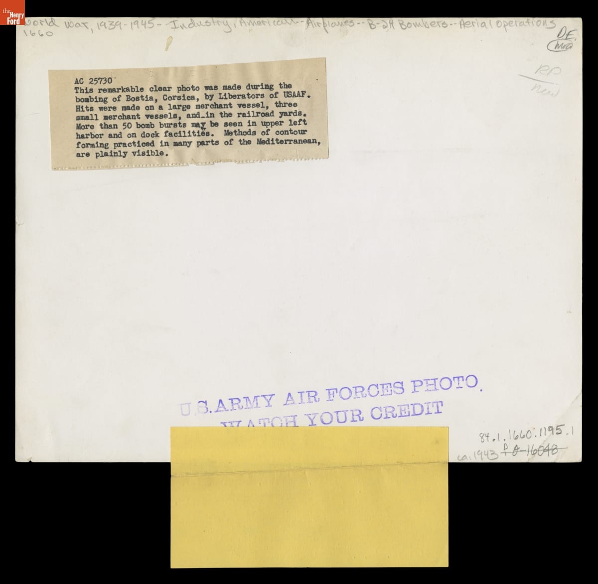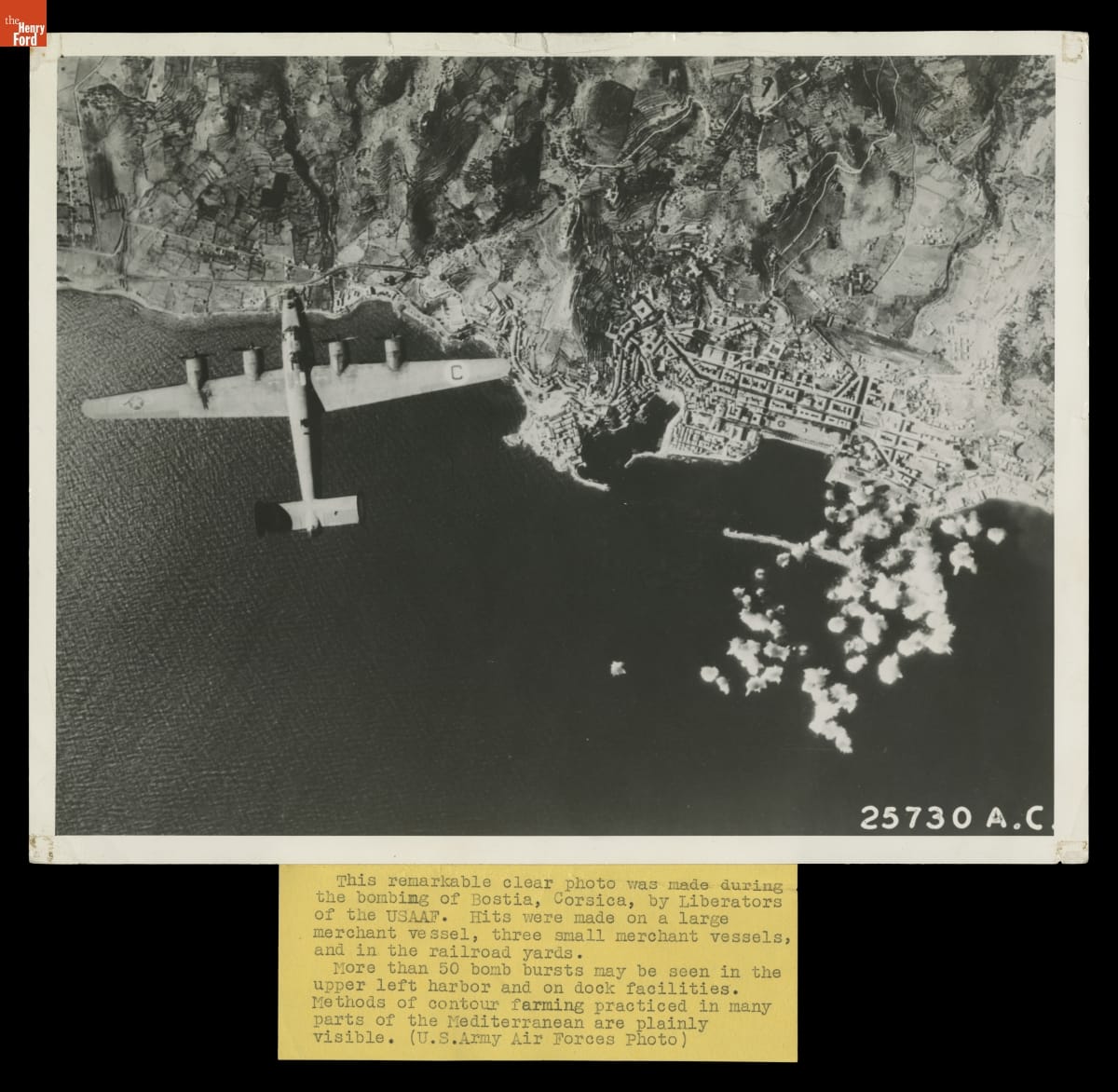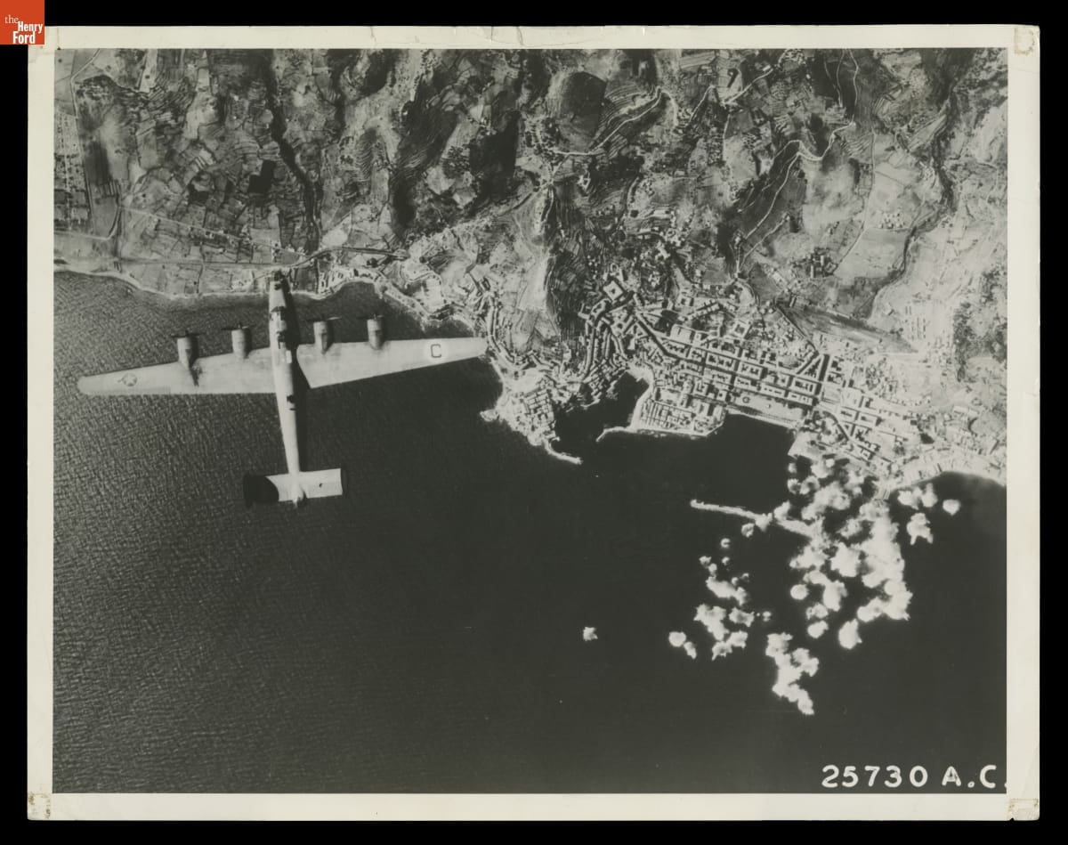 Aerial View of the Bombing of Corsica by B-24 Liberators, October 1943