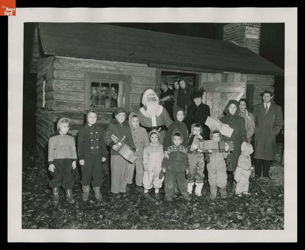 Clara Ford, Josephine Ford and Bryant Relatives at Santa's Workshop, Fair Lane, 1949-1950