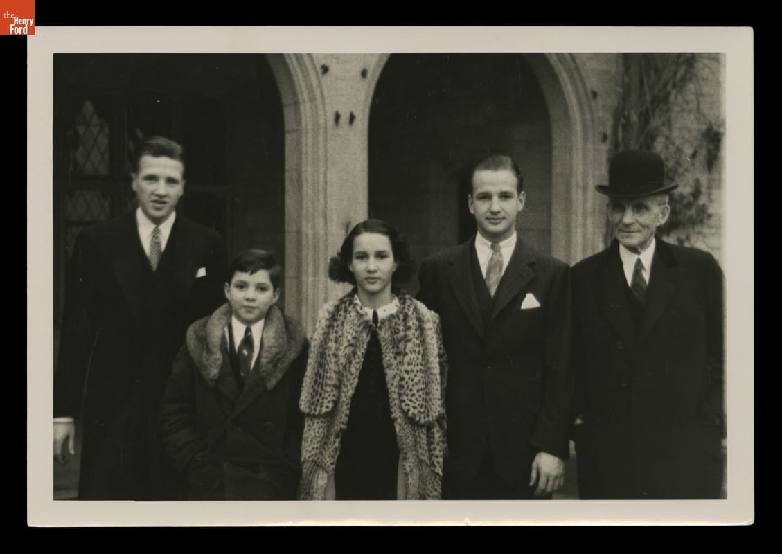 Henry Ford doted on his four grandchildren. Here he is posing with the four of them about 1935. From left to right, they are Henry II, William, Josephine and Benson.