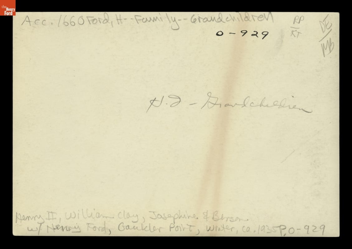 Henry Ford with His Grandchildren, Henry II, William Clay, Josephine, and Benson, circa 1935