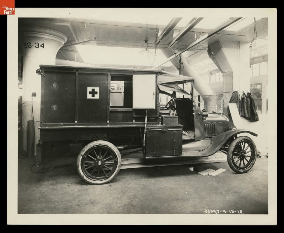 When the United States entered World War I, Ford Motor Company personnel collaborated with the U.S. Surgeon General's Office, and with drivers who had served on the frontlines in France, to design a Model T-based ambulance suited to battlefield conditions. Ford built 5,745 ambulances for the Allied Powers during the war, and another 107 for the Red Cross.