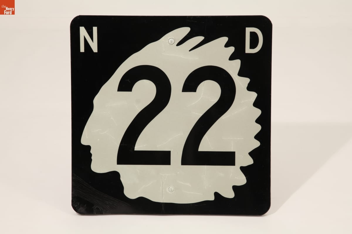 In 1923, North Dakota became one of the first states to adopt a uniform system for numbering and marking state highways. The state used the profile of the legendary Tacankpe Luta (Red Tomahawk), Lakota (Sioux) (c. 1850-1931) on its highway signs. In 2016, North Dakota's Department of Transportation switched to an outline of the state for its highway markers and began removing the older versions.