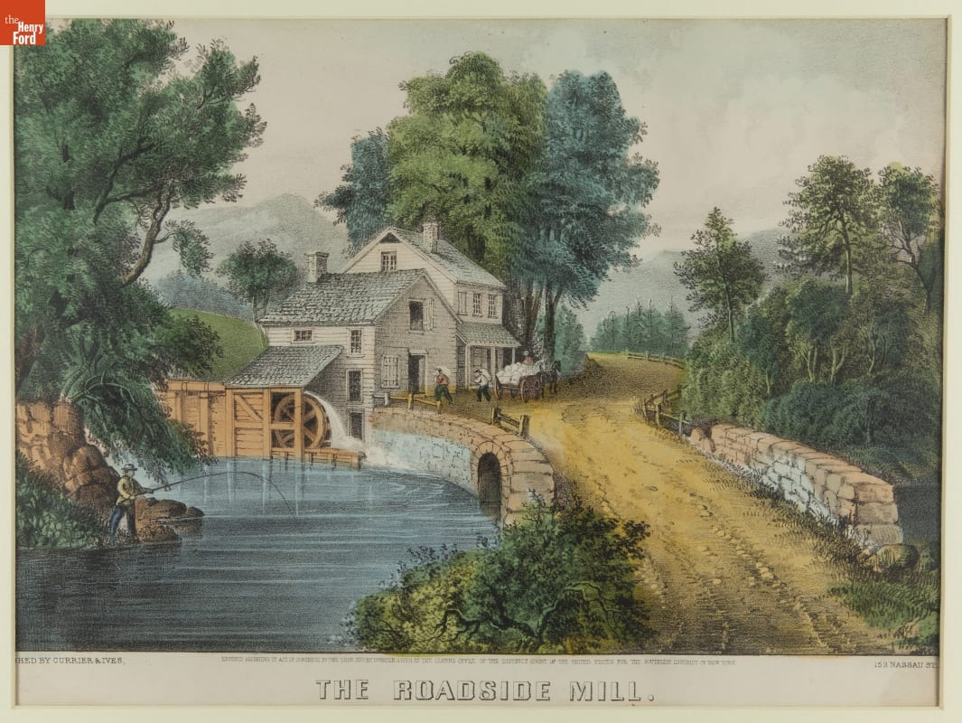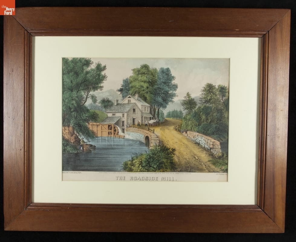 Lithograph by Currier & Ives, "The Roadside Mill," 1870
