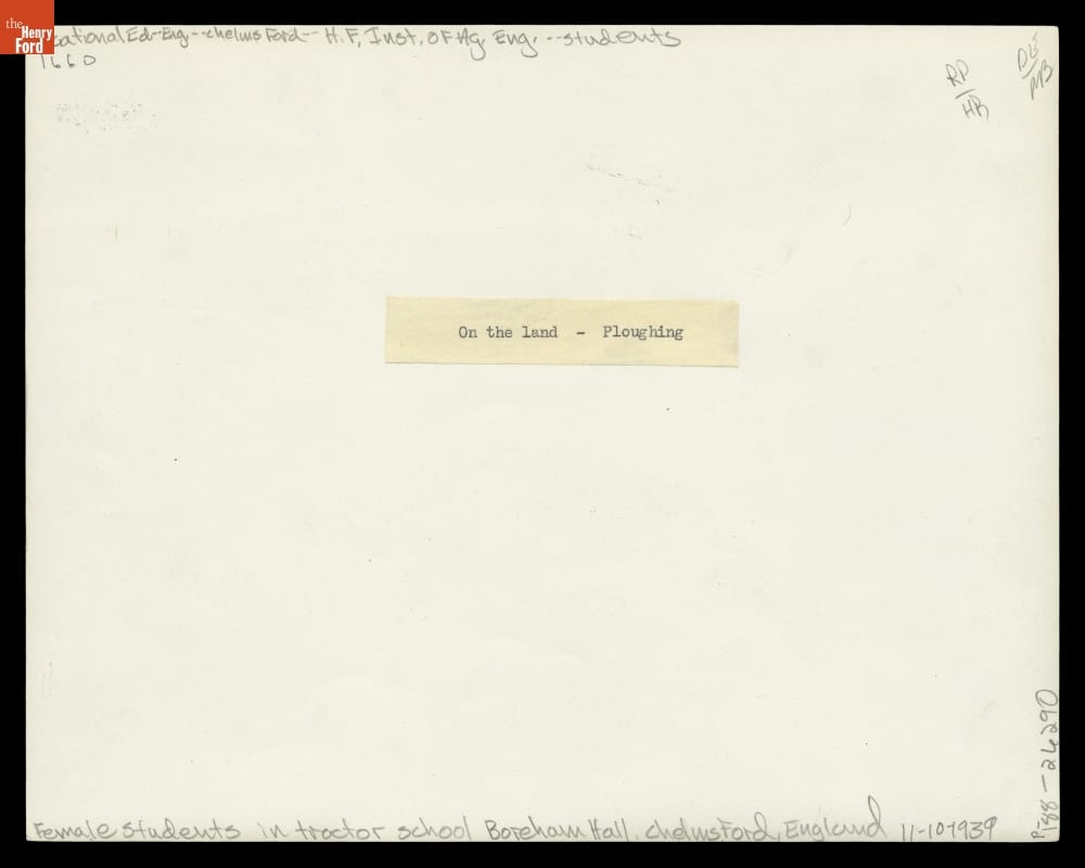 Woman on a Tractor Plowing a Field at Henry Ford Institute of Agricultural Engineering, England, 1939
