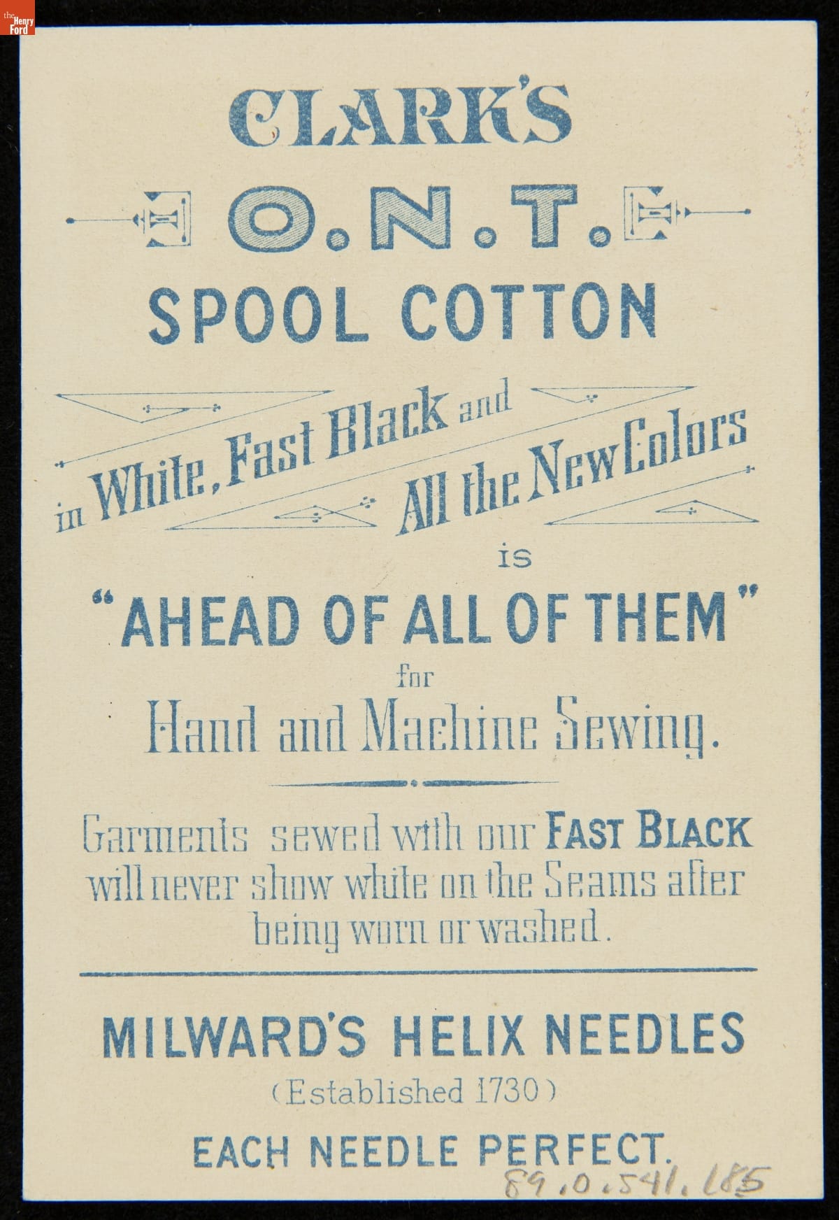 Trade Card for Clark's Spool Cotton, Clark's O.N.T., 1880-1890