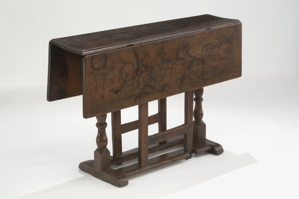 Colonial Americans used gate-leg tables chiefly for dining, but also for working, writing and game playing. These tables -- with their gate-framed legs that swing out to support the table leaves -- came in many sizes. And when not needed, these tables could be easily folded, moved from room to room, or placed against a wall to save space.