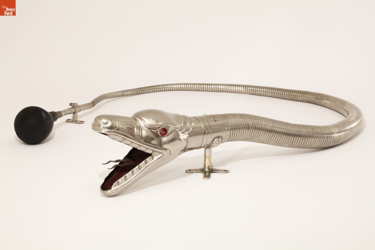 Motor vehicles can be dangerous if you don't hear them coming. Early automobiles were required to have some sort of horn to alert pedestrians, animals and horse-drawn vehicles. Some motorists used whistles or bells. Others installed brass, bulb horns. In addition to the sound this horn made, its snake-like appearance provided an added incentive to move quickly out of the way.