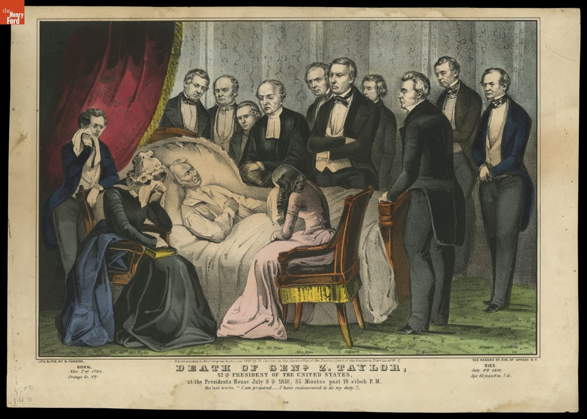 President Zachary Taylor died on July 9, 1850, after only sixteen months in office. Taylor, a hero of the Mexican-American War, died of an intestinal ailment that doctors at the time diagnosed as "cholera morbus." His unexpected death shocked the nation. An estimated one hundred thousand mourners lined the funeral route in the nation's capital. Taylor was succeeded by Vice President Millard Fillmore.