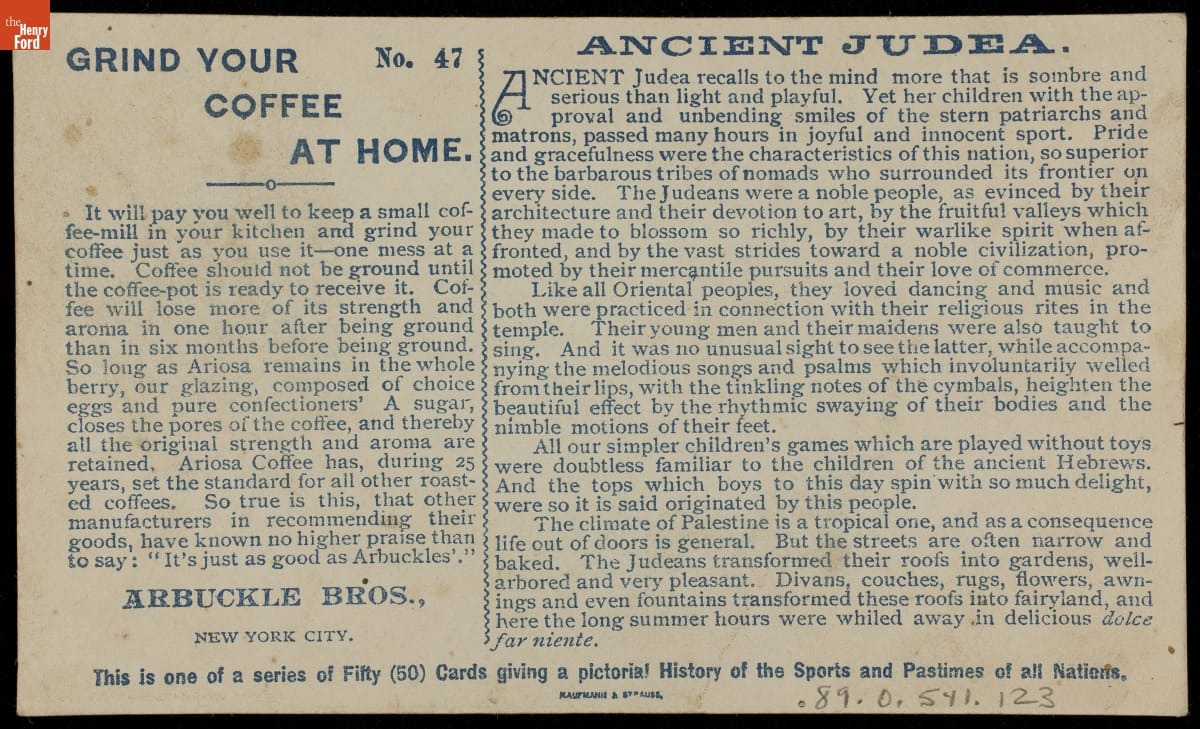 Trade Card for Ariosa Coffee, Arbuckle Bros., "Ancient Judea," 1893