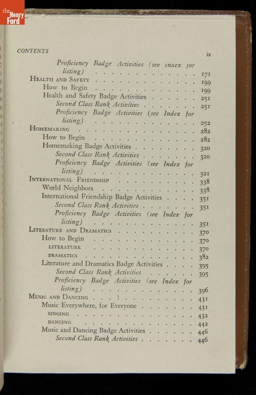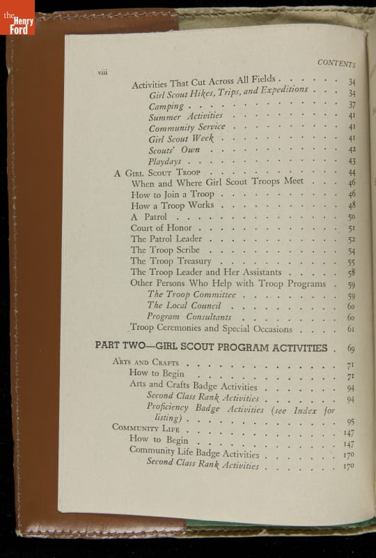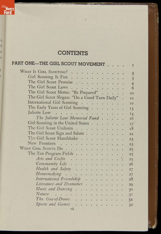 This handbook was printed in 1944 as a guide for Intermediate Girl Scouts - ages 10 to 13 - and their leaders. It includes a description of the youth organization (established in 1912), the official Girl Scout promise, laws, motto, and slogan, and an overview of activities in areas such as homemaking, health and safety, and the out-of-doors.