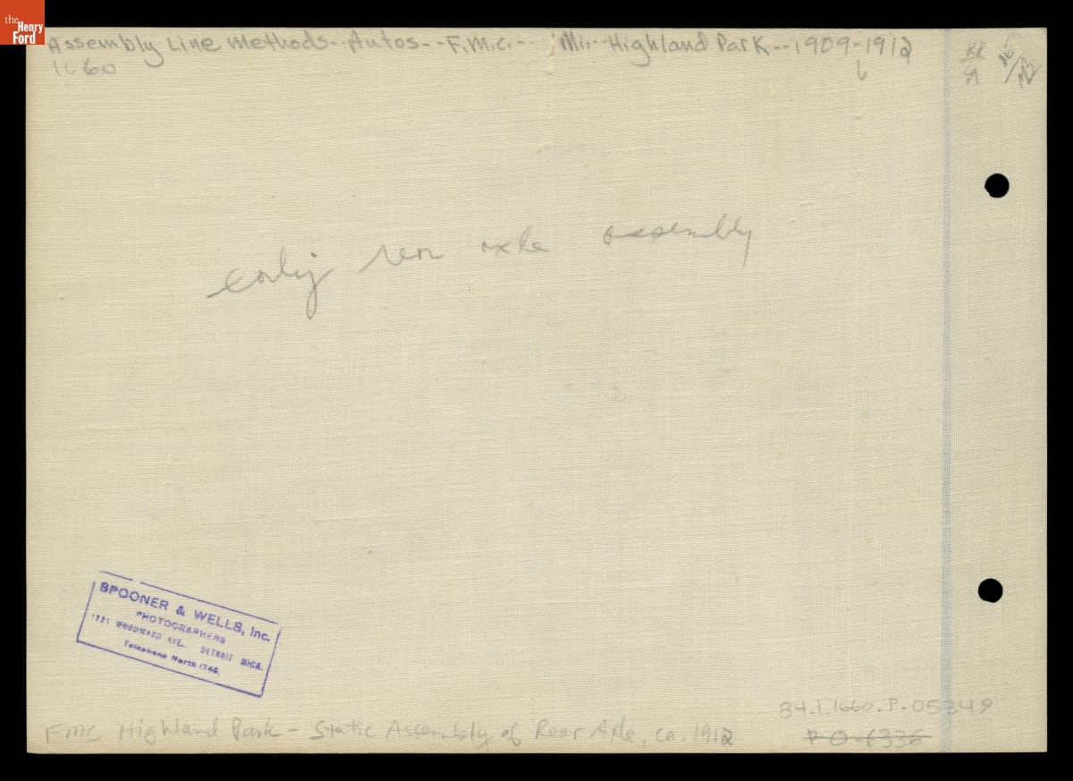 Static Assembly of Rear Axles at Ford Motor Company Highland Park Plant, circa 1910