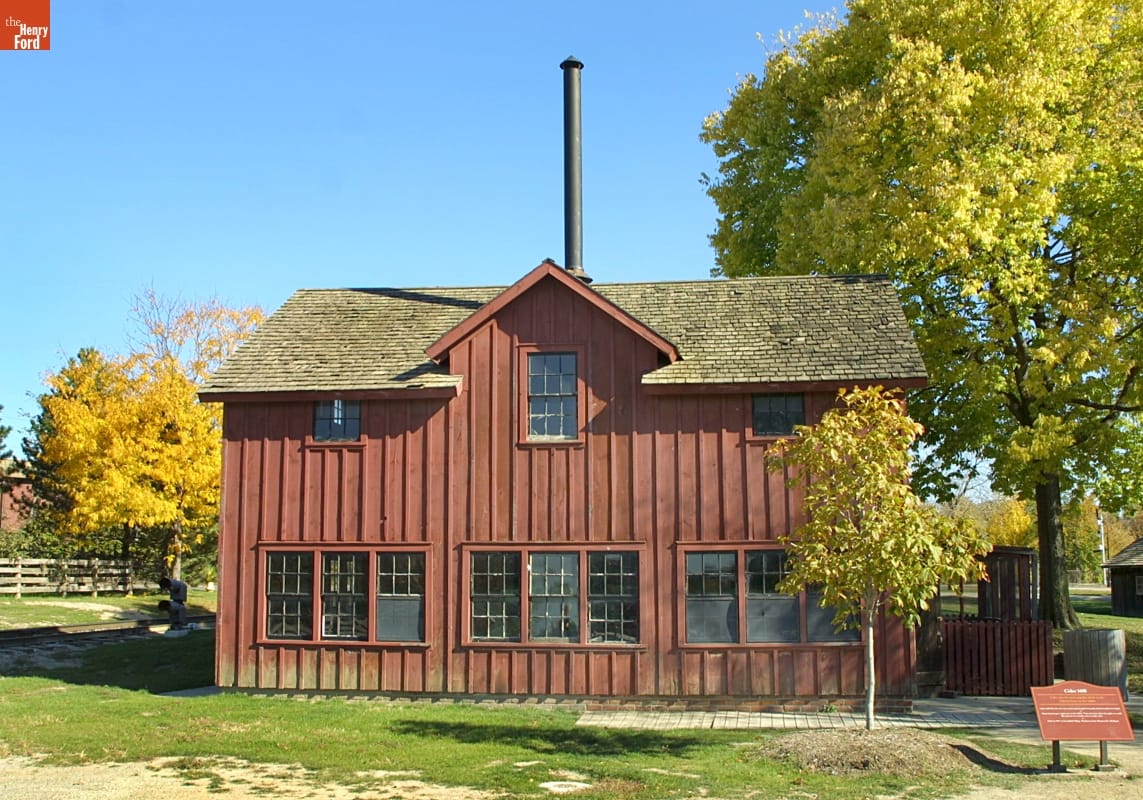 Building designed by Edward J. Cutler in the style of late 19th century cider mills and constructed in Greenfield Village in 1937.