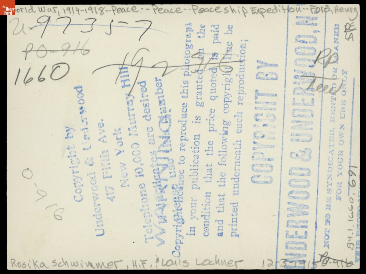 Rosika Schwimmer, Henry Ford, and Louis Lochner, December 3, 1915