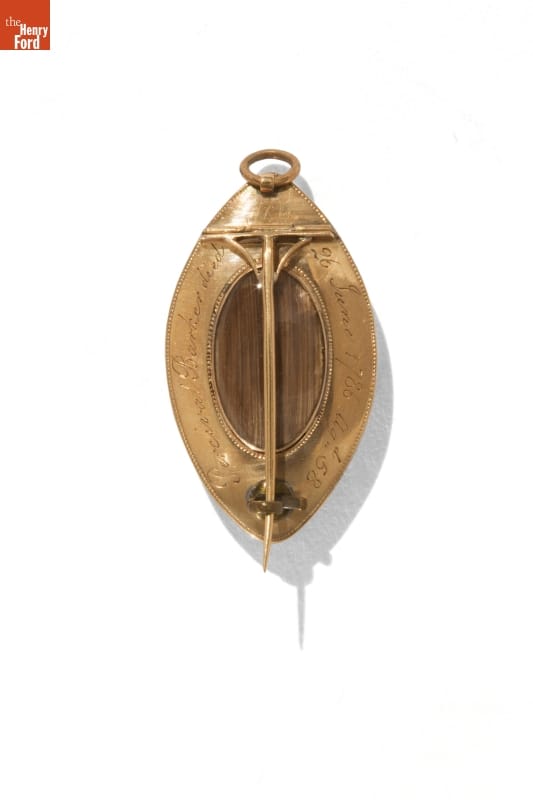 Before the 20th century, death came early and often. One way people coped was to wear jewelry as memorials to their loved ones. Over the centuries, mourning jewelry followed the prevailing fashions. Shortly after independence, Americans favored illuminated, miniature brooches and pendants painted on ivory. These featured shapes derived from classical design, symbols such as urns and weeping women dressed as ancient Romans.