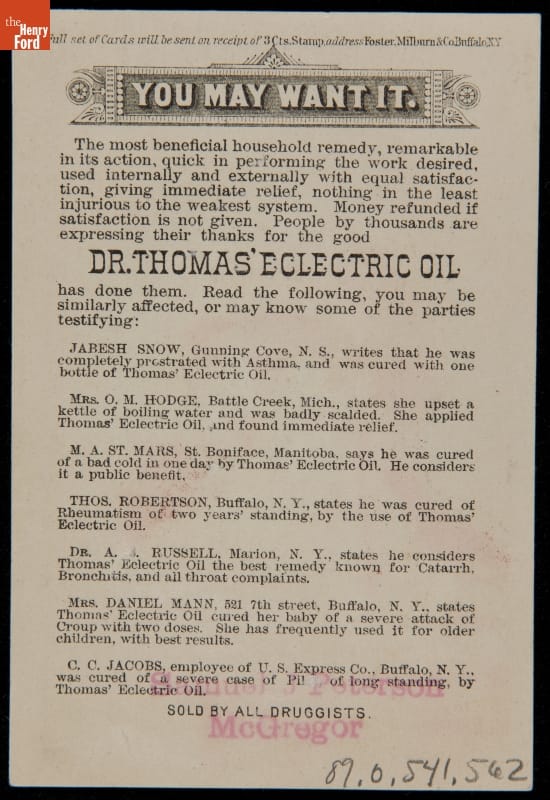 Trade Card for Dr. Thomas' Eclectric Oil, 1885-1895