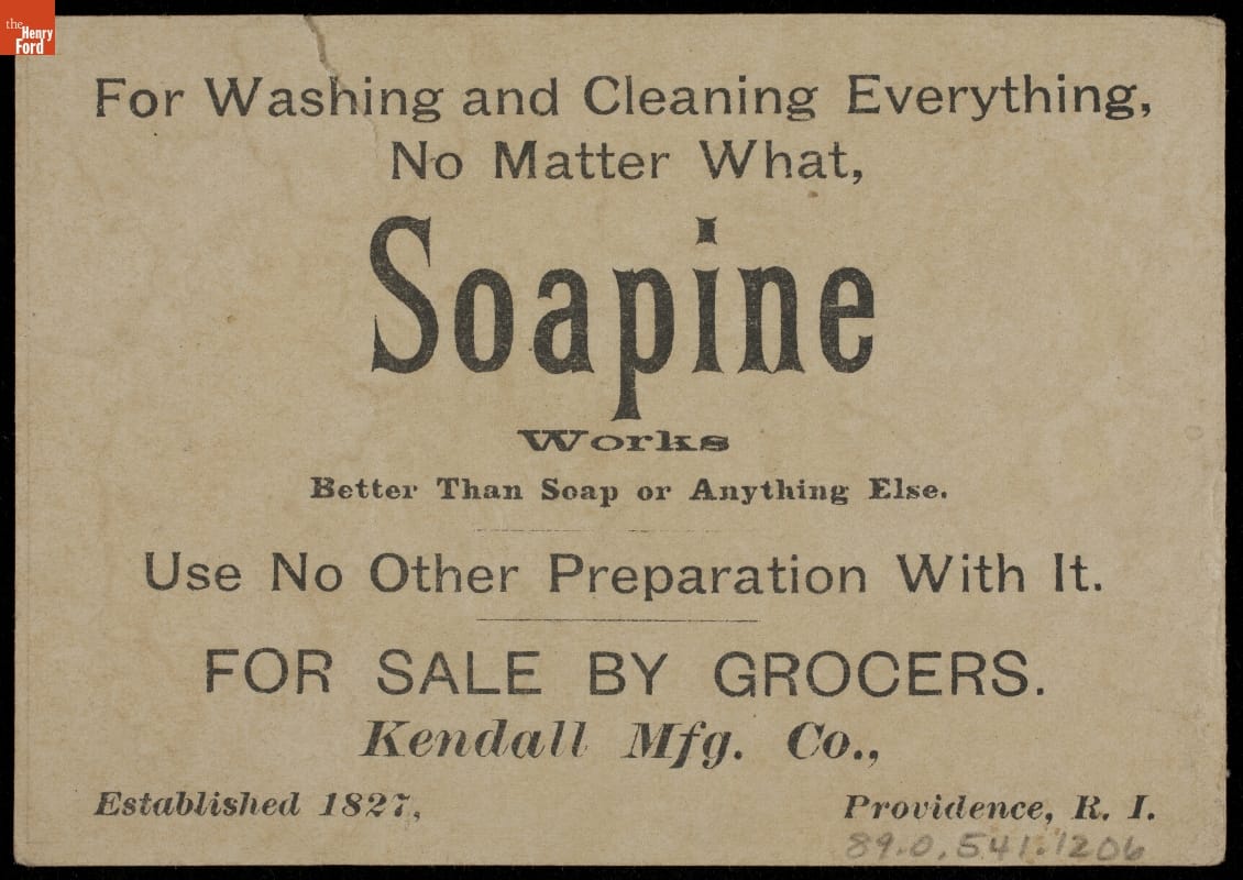 Trade Card for Soapine, Kendall Mfg. Co., 1880-1900