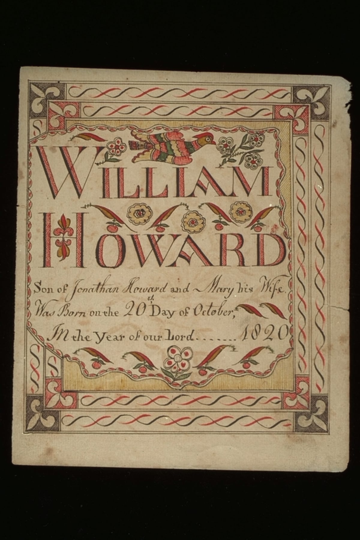 Birth Certificate for William Howard, 1820