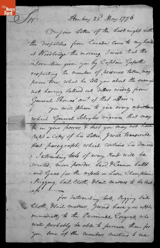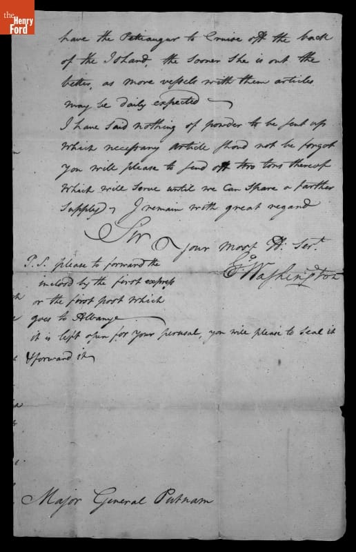 Letter from George Washington to General Israel Putnam, 1776