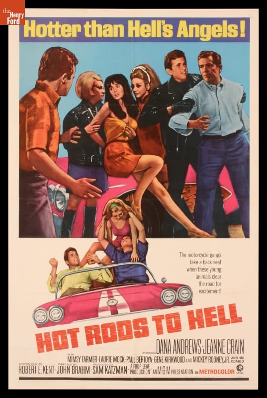 Dana Andrews starred as an innkeeper tangling with teenage hot rodders in the 1967 movie Hot Rods to Hell, directed by John Brahm. Fast cars and fast living have proved an irresistible story combination to filmmakers over the years.