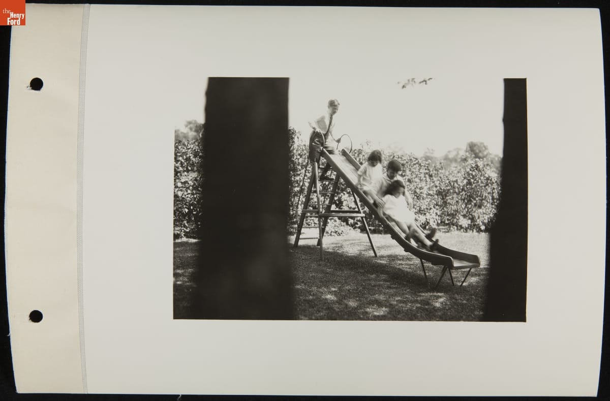 Henry Ford II, William Clay Ford, Benson Ford, and Josephine Ford on a Playground Slide, June 1929