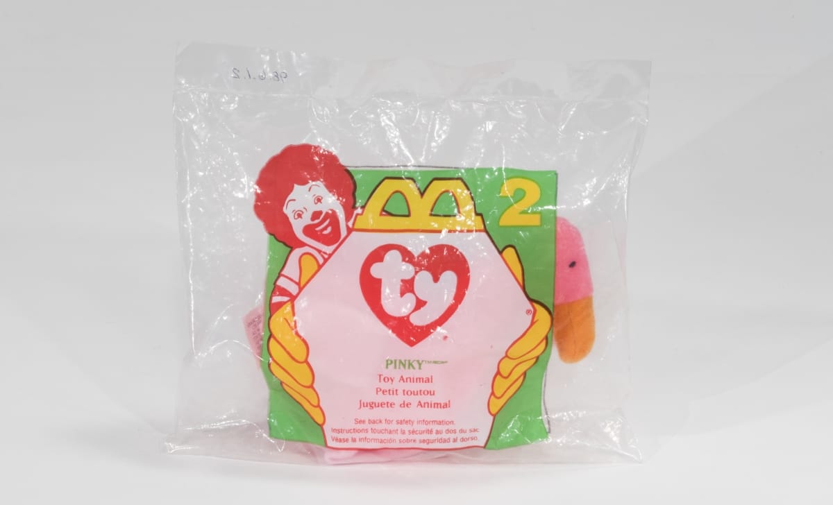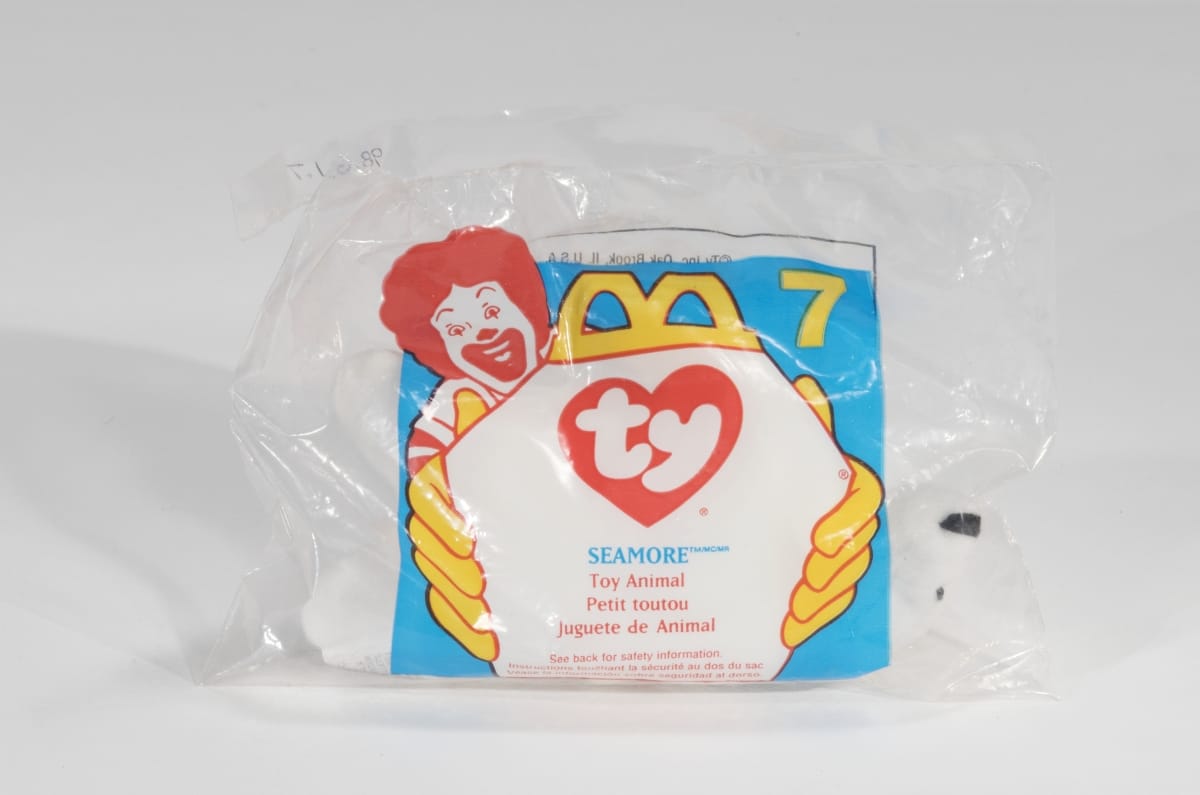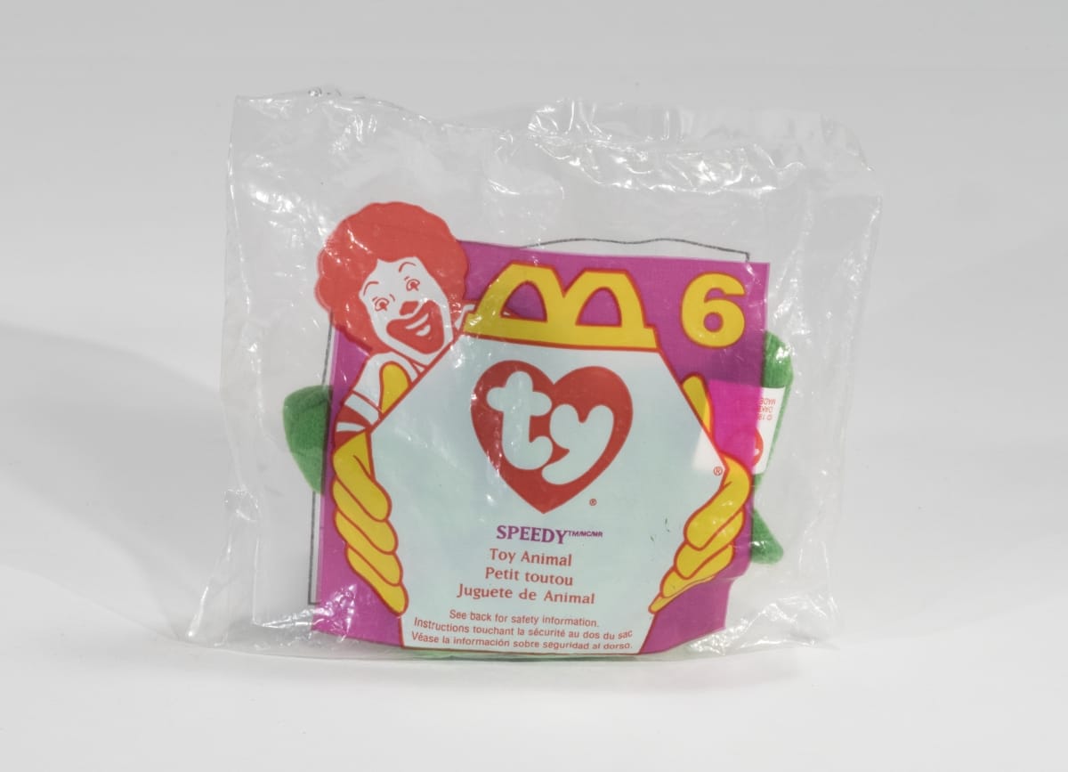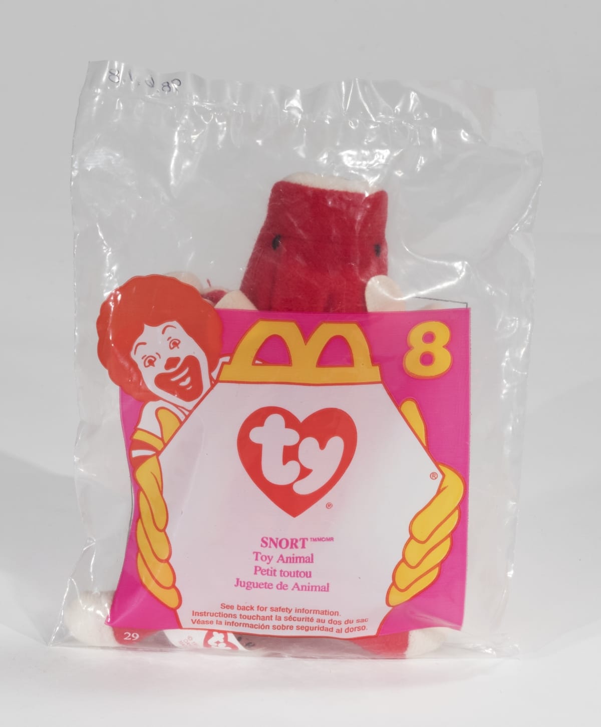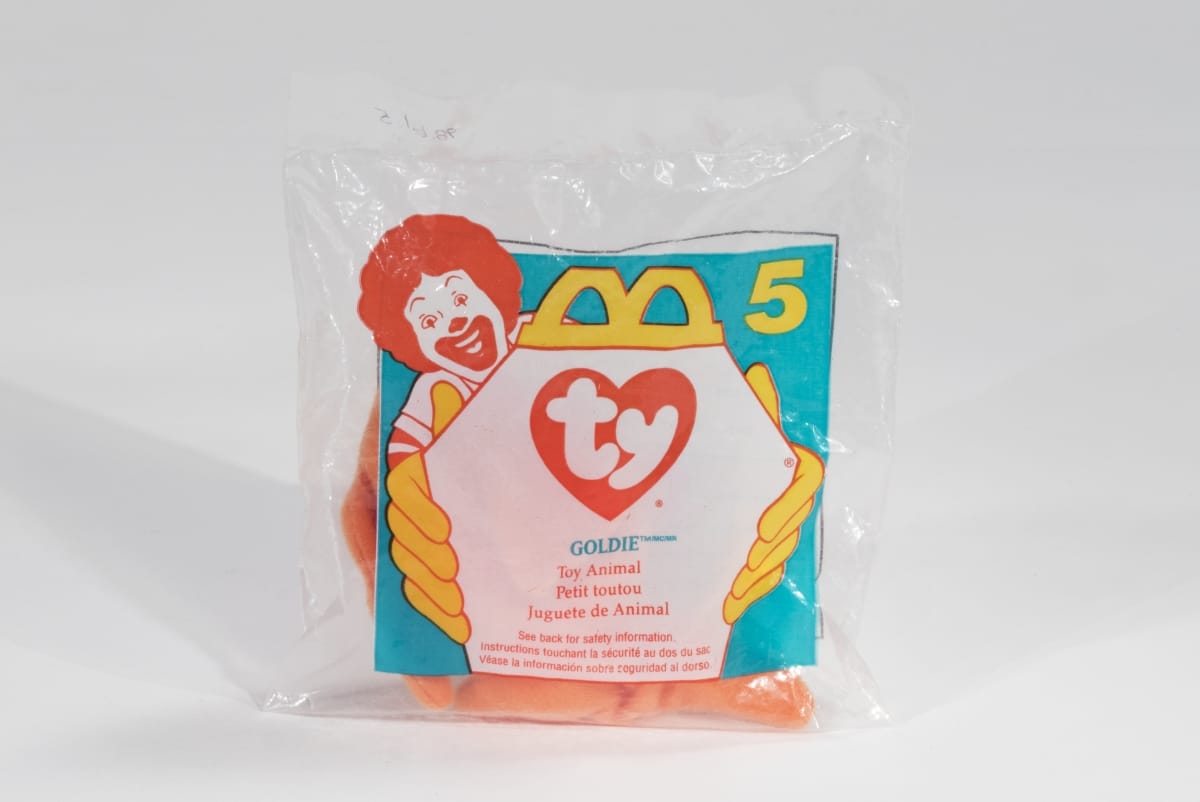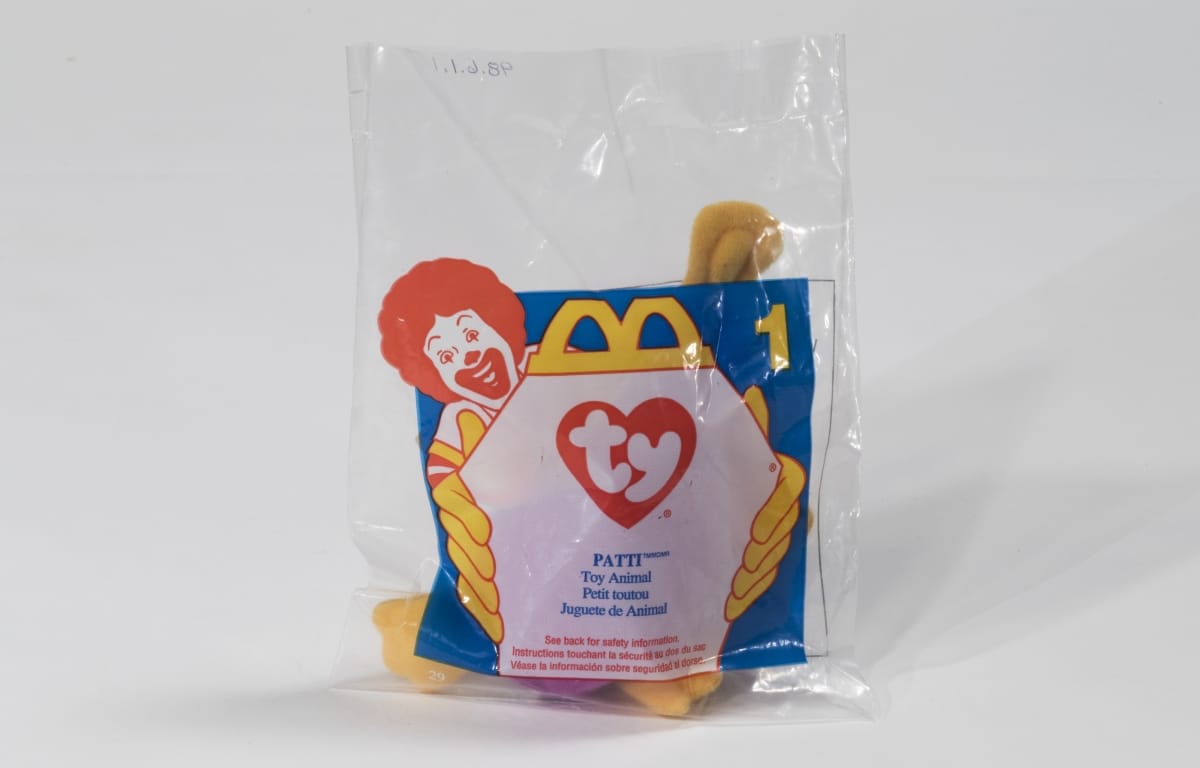 Ty Inc. Oakbrook, IL U.S.A. / Safety-tested for children of all ages. / Recommended for children age 1 and over. / WARNING:TO AVOID DANGER OF SUFFOCATION DEEP AWAY FROM / BABIES AND CHILDREN. DISPOSE OF THIS BAG IMMEDIATELY. / CONTENTS MADE IN CHINA. POLYBAG PRINTED IN CHINA. / 1996 McDonald's Corporation, Oakbrook, IL 60521