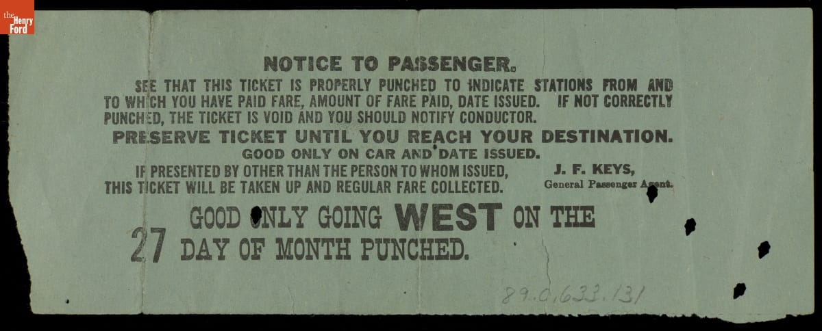 Interurbans were electric commuter trains that served as lifelines between small towns and cities starting in the 1880s. This ticket was good for one fare on the Wyandotte and Detroit River Railway, an interurban line serving Detroit, Wyandotte, and Trenton in southeast Michigan.